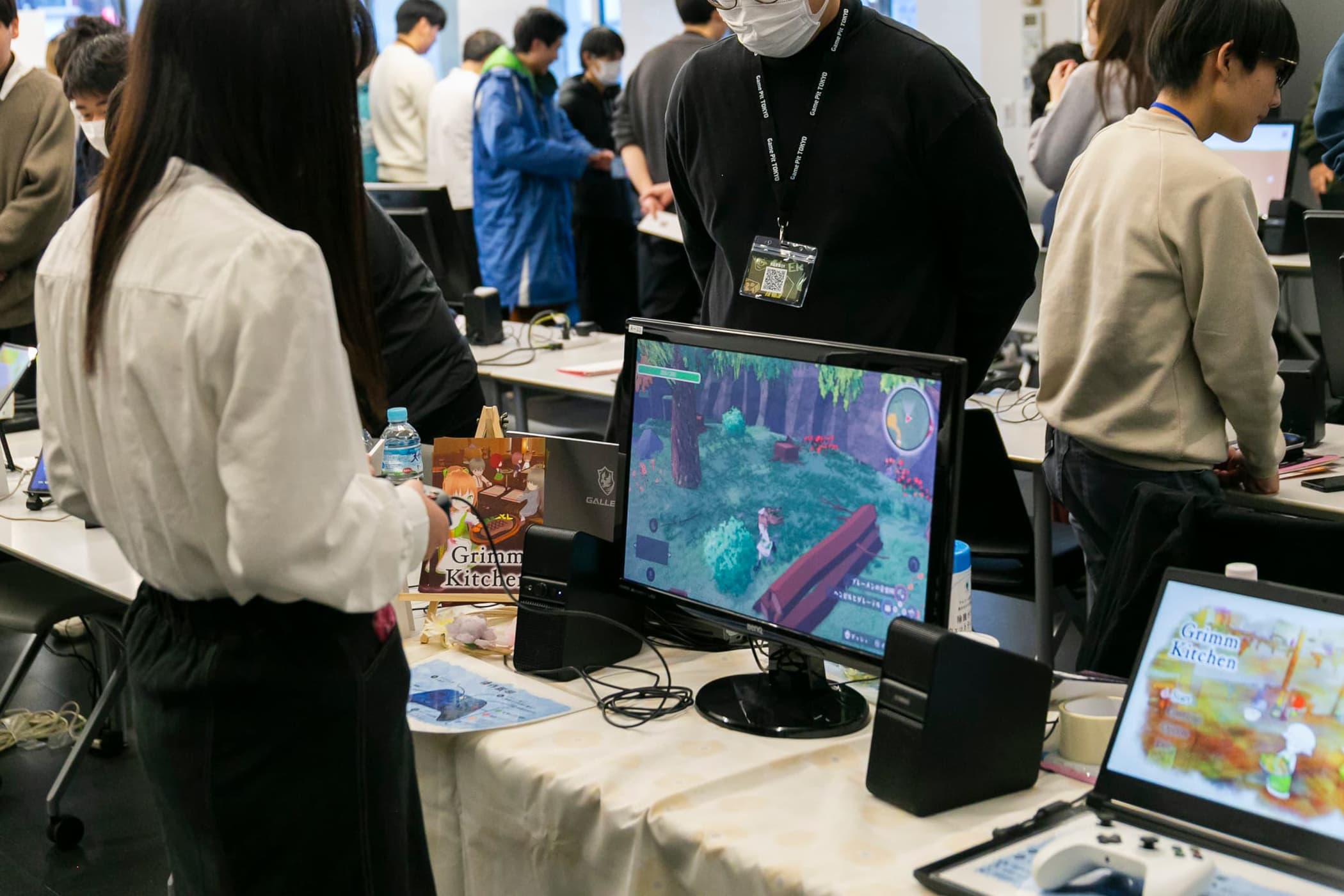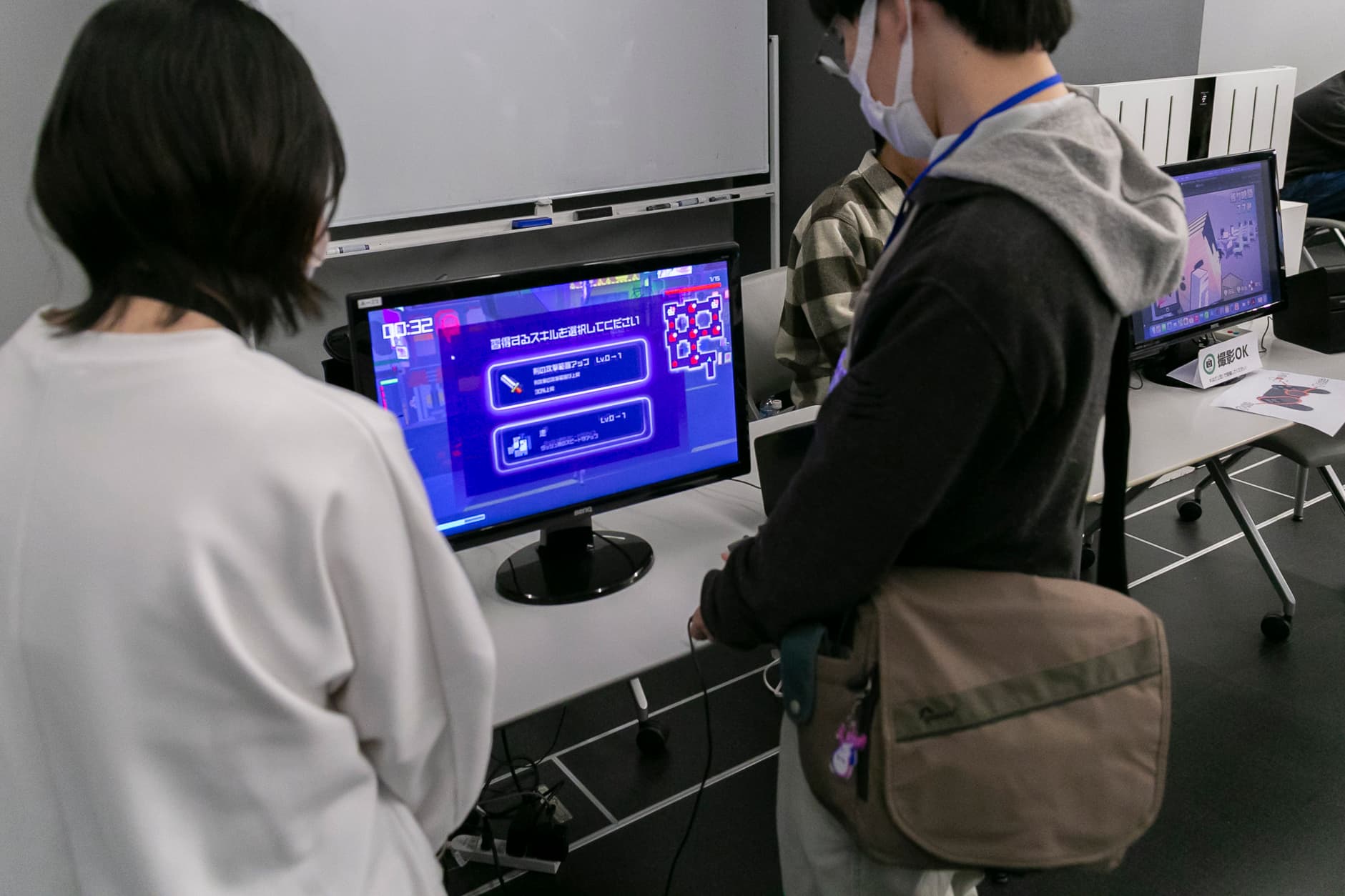 この展示会では、各校の学生が制作したゲームを持ち寄り、互いに講評し合います。さらに、さまざまな学校の先生方、ゲーム業界の方からも直接アドバイスをいただき、作品を社会に送り出す前に磨き上げる機会としています。